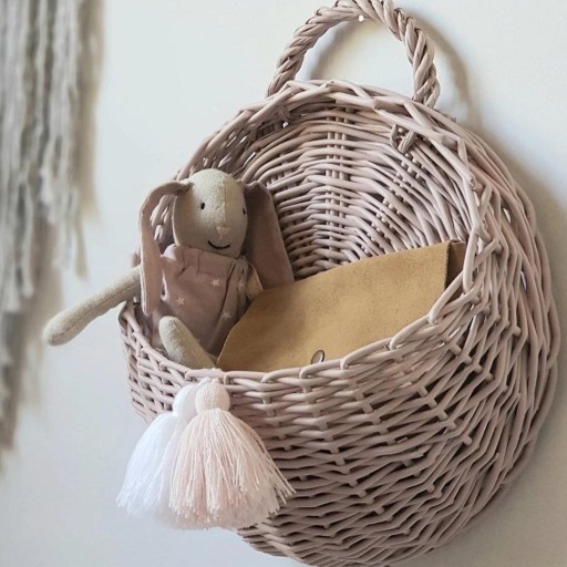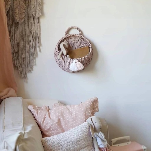 Różowy koszyk wiklinowy ścienny - dekoracja pokoju dziecka