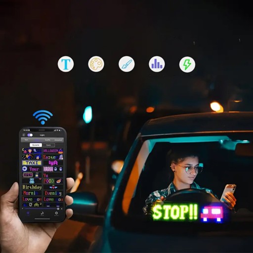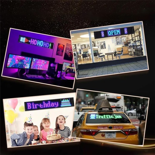 dynamiczny, programowalny, elastyczny wyświetlacz LED DIY do samochodów może być używany w barach, restauracjach, sklepach, samochodach, u ulicznych sprzedawców, na imprezach, koncertach, dekoracjach ślubnych i nie tylko. Spraw, aby Twój samochód przyciągał wzrok, mocując ultracienki ekran LED BT do szyby samochodu.