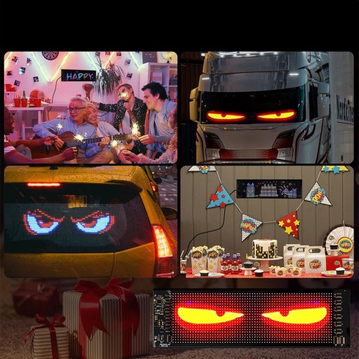 Flex LED display car large programmable (aplikacja + pilot). Niezwykle cienki i lekki miękki ekran z kolorowym światłem oczu do szyby samochodu można wyginać, składać i kształtować, aby dostosować się do różnych powierzchni. Miękki ekran: ten wyświetlacz Devil's Eye można wyginać, składać i kształtować, aby dostosować się do różnych powierzchni. Jest bardzo lekki i łatwy w instalacji.