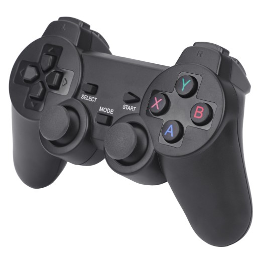 Dwa bezprzewodowe pady do gier, które działają na częstotliwości 2,4 GHz, pozwalają na sterowanie konsolą bez użycia przewodów. W ten sposób możliwe jest korzystanie z dwóch kontrolerów jednocześnie.