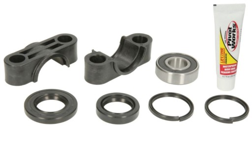 Zestaw jest bardzo dobrze i solidnie wykonany zgodnie z fabrycznym standardem, jak i wymiarem. Przeznaczony jest wyłącznie na regenerację główki ramy. W zestawie znajdują się: 2x uszczelniacze, 1x łożysko, 2x mocowania kolumny kierowniczej, 2x gumowe podkładki oraz fabryczny smar od producenta potrzebny do montażu. Dzięki sprawdzonej, wysokiej jakości zapewnia długą, jak i bezproblemową eksploatację.