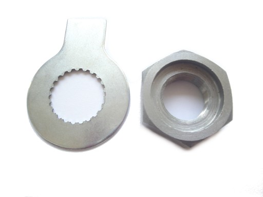 Nowa podkładka zabezpieczająca przed odkręceniem nakrętkę na wałek zdawczy skrzyni biegów (przy przedniej zębatce).