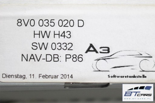 AUDI A3 ZESTAW MMI 3G+ MONITOR + CZYTNIK MIB + PANEL 8V0035020D 8V0919604C