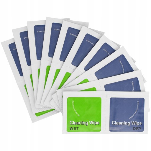 ✅ 10szt. Chusteczek alkoholowych – do wstępnej dezynfekcji i usuwania tłustych plam z zewnętrznych elementów aparatu.