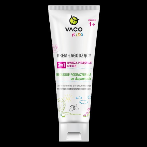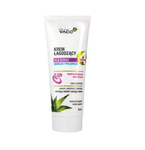 Krem łagodzący skutki ukąszeń stworzony przez markę Vaco. Na bazie naturalnych składników aktywnych.