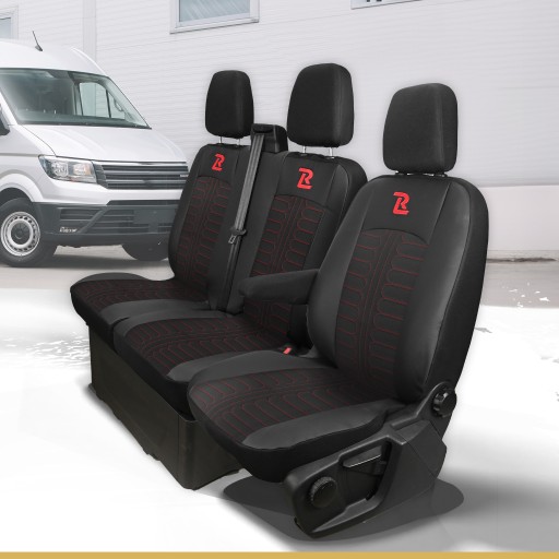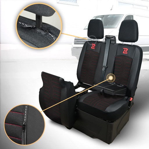 Pokrowce na fotele do Ford Transit, Transit Custom od 2013 do 2024 r. - TORNADO 1+2 - Czarno czerwone