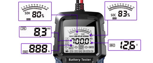 Dzięki zaawansowanej technologii testowania przewodności, ten innowacyjny produkt umożliwia precyzyjną diagnozę stanu każdego rodzaju akumulatora o napięciu 12V i 24V. Tester dostarcza precyzyjne wyniki pomiarów dla akumulatorów typu AGM, GEL, VRLA, EFB oraz STD. Warto pamiętać, że nieprawidłowy odczyt wyniku testu nie zawsze oznacza uszkodzenie akumulatora. Na wynik pomiaru mogą wpływać korozja i różnego rodzaju zanieczyszczenia, dlatego przed pomiarem zaleca się oczyszczenie miejsc, do których przykładasz sondy.