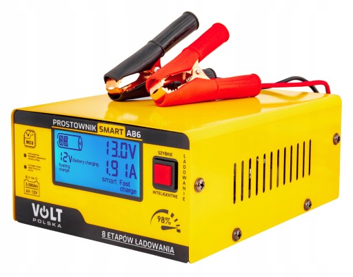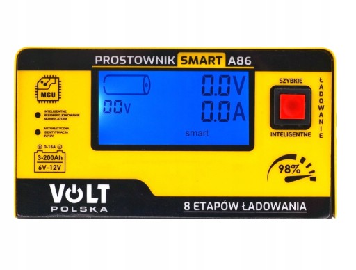 Prostownik SMART 6V/12V 15A A86 to pierwsza na rynku ładowarka akumulatorów z mikroprocesorowym systemem kontroli i sterowania w technologii PWM z możliwością ładowania akumulatorów do 6V i 12V oraz możliwością wyboru niestandardowych typów napięć akumulatorów. Dzięki inteligentnemu ustawieniu parametrów pozwala na regenerację rozładowanego akumulatora.
