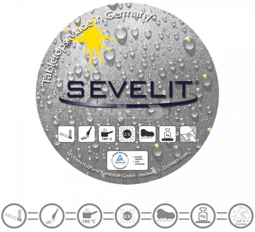 - Blat z sevelitu z zabezpieczeniem krawędzi, który jest znany na całym świecie ze swojej odporności na warunki atmosferyczne i naprężenia mechaniczne