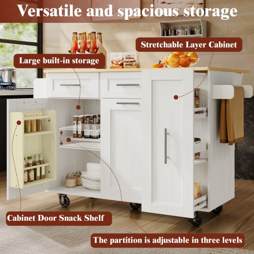 Nowoczesna wyspa kuchenna z miejscem do przechowywania, biały wózek jadalny