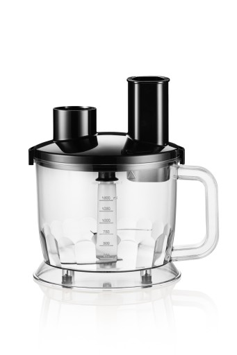 - Pojemnik 1500 ml z nożem i tarczami tnącymi – wygodne miksowanie składników bezpośrednio w pojemniku.