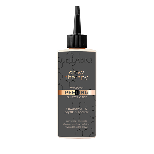 Kwasowy peeling złuszczający z serii Grow Therapy został stworzony specjalnie dla mężczyzn, którzy zmagają się z przetłuszczającą się skórą głowy, łupieżem i nadmiernym wypadaniem włosów. Dzięki połączeniu 5 kwasów AHA oraz innowacyjnego kompleksu peptID-5 booster, peeling skutecznie usuwa martwy naskórek, oczyszcza skórę głowy i wspiera wzrost nowych, mocniejszych włosów. Regularne stosowanie peelingu reguluje wydzielanie sebum, redukuje przetłuszczanie się skalpu i poprawia ogólną kondycję skóry głowy.