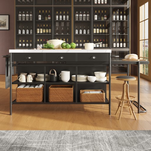 Wyspy kuchenne, rozkładany blat z marmuru sztucznego industrialny z 3 szufladami, wielofunkcyjne meble do kuchni i jadalni, wyspa kuchenna, półka kuchenna, kredens kuchenny, blat kuchenny z płyty MDF
