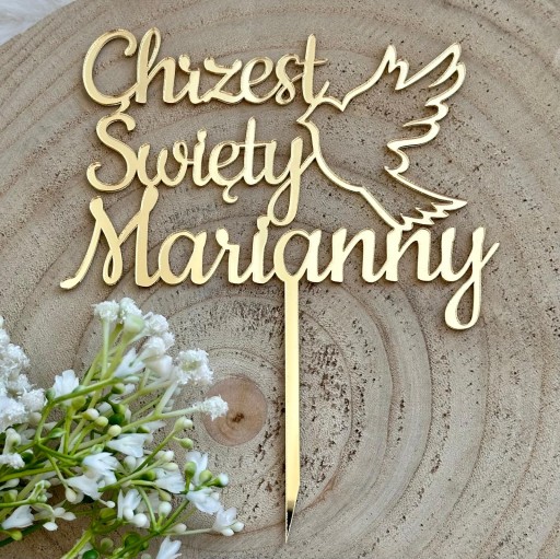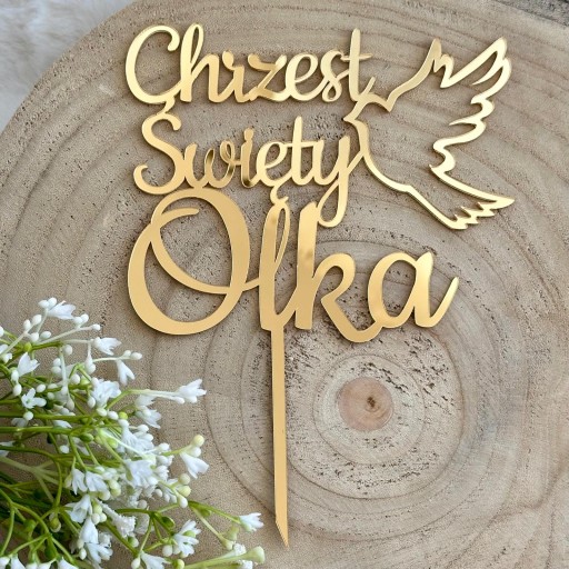 Крещение любым именем Крещение Голубь Топпер Имя Золотой ПЛЕКСИ 14см