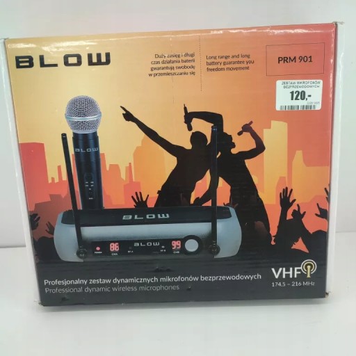 Profesjonalny, wysokiej klasy zestaw składający się z bezprzewodowego mikrofonu oraz odbiornika marki Blow przeznaczony zarówno do użytku profesjonalnego jak i amatorskiego. Podłączenie oraz użytkowanie nie powinno stanowić większego problemu. Maksymalny zasięg pomiędzy odbiornikiem, a mikrofonem wynosi 50 metrów.