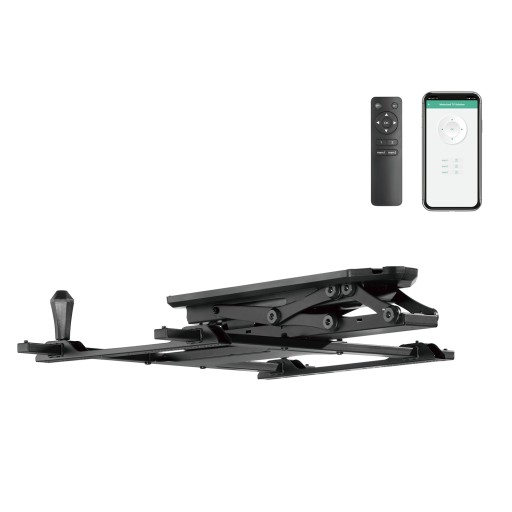 Dzięki dołączonemu pilotowi możesz bezstopniowo regulować nachylenie uchwytu w zakresie od 0 do 75° bez konieczności wstawania. Dodatkowo pamięć pilota pozwala na zapisanie dwóch wybranych pozycji położenia, dzięki czemu można ustawić telewizor w swojej ulubionej pozycji przez naciśnięcie tylko jednego przycisku. Oprócz tego istnieje możliwość sterowania uchwytem za pomocą smartfona lub tabletu z zainstalowaną darmową aplikacją Tuya.