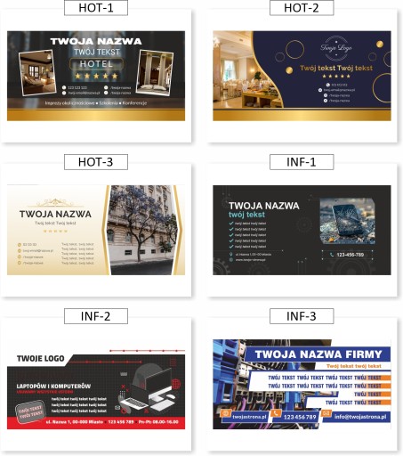 ✅ Baner drukowany na podstawie gotowego szablonu (przykładowe wzory poniżej) ze zmianą treści - podaj nam telefon do wpisania