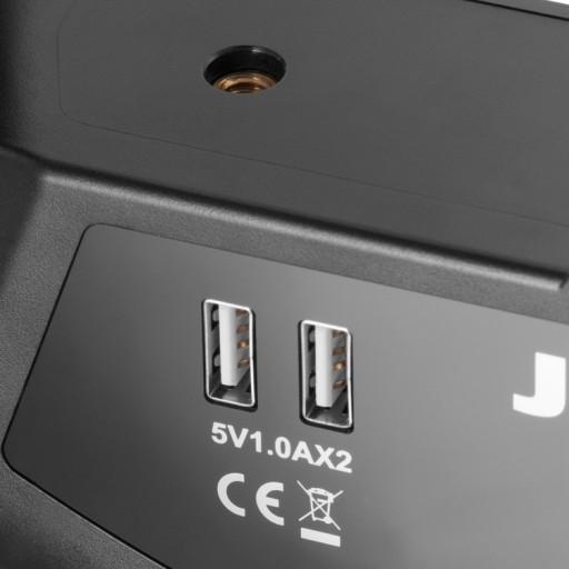 Jinbei EFR-36 to lampa w kształcie pierścienia, od frontu wykończona mleczną osłoną diod LED. Urządzenie jest wyposażone w elastyczny uchwyt do smartfona oraz gniazdo zimnej stopki do montażu opcjonalnych akcesoriów takich jak mikrofon czy rekorder. Panel sterowania z pokrętłami do regulacji natężenia oświetlenia i temperatury barwowej znajduje tuż obok gniazda zimnej stopki. Z tyłu lampy wmontowano dwa gniazda USB, które mogą posłużyć do zasialania smartfonów lub innych akcesoriów oraz gniazdo zasilania. Od spodu lampa EFR-36 posiada uchwyt przegubowy wykończony gniazdem w standardzie 16mm.