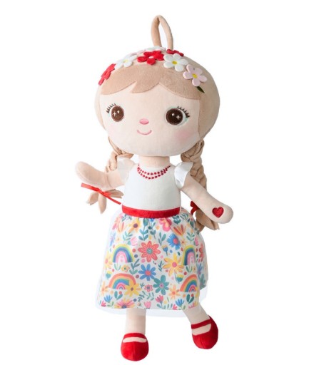 Oto wyjątkowa laleczka Słowianka – pełna uroku, wdzięku i inspirowana pięknem naszej natury. Jej śliczna, kwiecista sukienka przywodzi na myśl malownicze, letnie łąki skąpane w słońcu i wypełnione zapachem polnych kwiatów. Złociste, długie warkocze przewiązane czerwonymi kokardkami dodają jej dziewczęcego wdzięku, a wianek z barwnych kwiatów sprawia, że wygląda niczym bohaterka dawnych baśni.