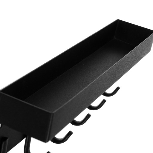 Uniwersalny design z czarnym, matowym wykończeniem doskonale komponuje się z nowoczesnymi, minimalistycznymi oraz klasycznymi aranżacjami wnętrz. Wieszak z półką to nie tylko praktyczne rozwiązanie, ale również stylowy element dekoracyjny, który wprowadzi nowoczesny akcent do Twojego domu.