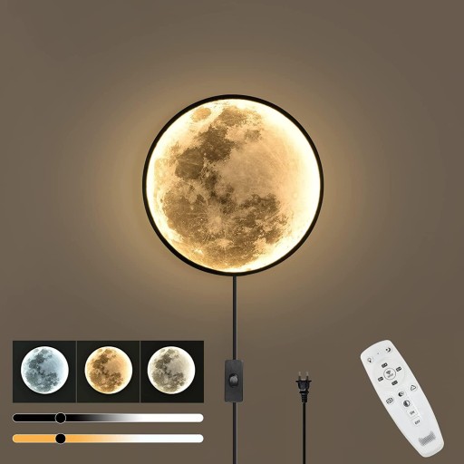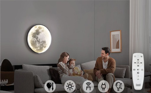 🔥KINKIET LED MOON Z 3 TEMPERATURAMI BARWOWYMI I FUNKCJĄ PAMIĘCI, PILOTEM ZDALNEGO STEROWANIA, LAMPKĄ NOCNĄ🔥