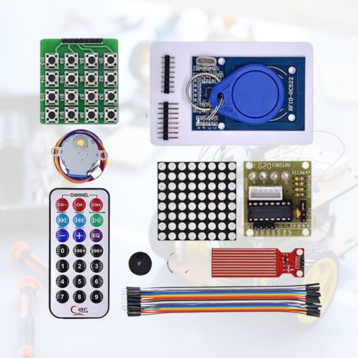 W skład zestawu wchodzi płytka główna Solectro Uno CH340 kompatybilna z Arduino, która jest jedną z najbardziej popularnych na rynku. Wyposażona jest w wiele pinów wejścia/wyjścia,co umożliwia łatwe podłączanie różnych czujnikówi dodatkowych rozszerzeń, tzw. shieldów. Ponadto, w zestawie znajduje się wiele różnych komponentów, takich jak np. diody LED, rezystory, czujnik ruchu, dźwięku czy temperatury, które pozwolą Tobie tworzyć różnorodne projekty.
