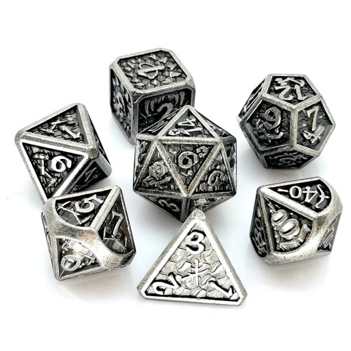 Zestaw siedmiu metalowych kości do gier fabularnych