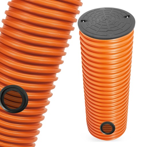 W zestawie znajduje się trwała rura karbowana z polipropylenu, odpornego na uszkodzenia mechaniczne, działanie chemikaliów oraz zmienne temperatury. Dzięki temu studnia świetnie sprawdza się w różnych warunkach gruntowych. W komplecie otrzymujesz też solidną pokrywę i szczelną uszczelkę – to gotowy pakiet, który zapewnia trwałość i bezproblemowe działanie systemu drenarskiego.