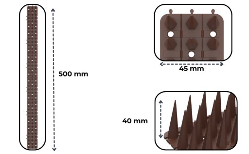 ✅ Listwa o długości 50 cm i szerokości 4,5 cm z kolcami o wysokości 4 cm.