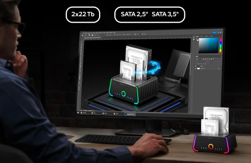 2,5" 3,5" SATA HDD SSD CLONING DOCKING STATION 2x 22TB USB 3.2 RGB