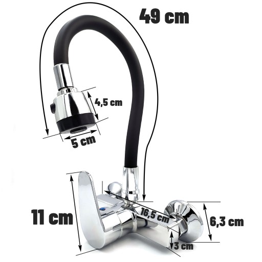 Bateria kuchenna ścienna z długą, giętką wylewką