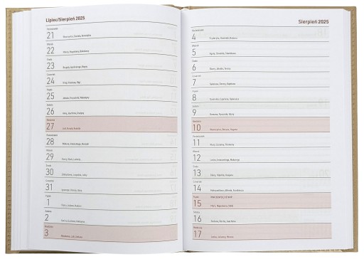- układ: tydzień na dwóch stronach