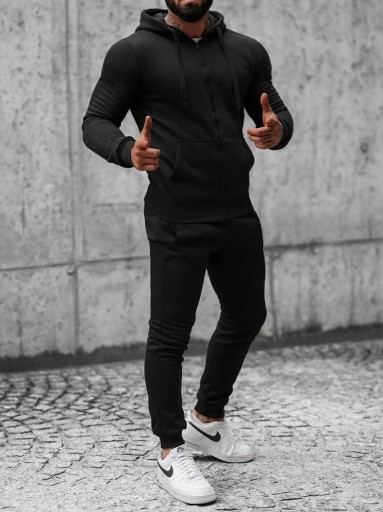 КОМПЛЕКТ МУЖСКОЙ, ЧЕРНЫЙ СПОРТИВНЫЙ КОСТЮМ С КАПЮШОНОМ НА МОЛНИИ, L