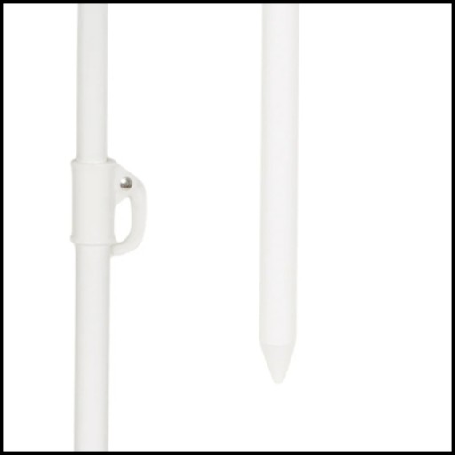 Końcówka tyczki zakończona jest ostrzem, dzięki czemu łatwo wbija się ją w ziemię w ogrodzie czy piasek na plaży. Pozwala to na rozstawienie parasola w wielu miejscach, w których wcześniej było to niemożliwe.
