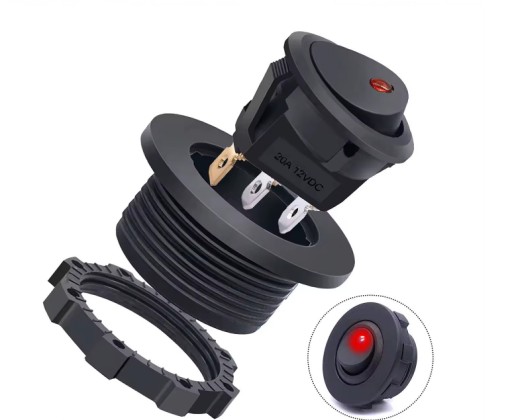 Zaprojektowany do dowolnego podłączania i odłączania obwodu elektrycznego DC12V 20A, SPST: Sterowanie ON-OFF; konstrukcja 2-biegunowa (On/Off), trzeci biegun z diodą LED do podłączenia do uziemienia.