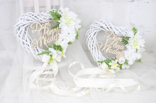 Dom Pana Młodego, Dom Panny Młodej, Dom Państwa Młodych, Witamy Gości Weselnych (po zakupie proszę o informację z jakim napisem wykonać wianek)