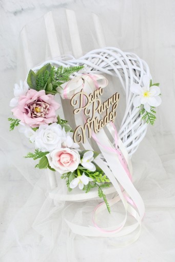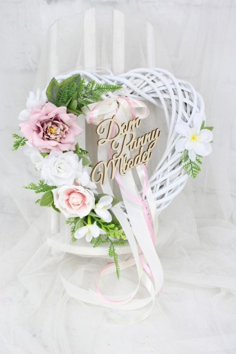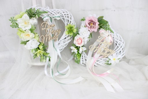 W innych ofertach dostępne są mniejsze serca w podobnym stylu oraz inne kolory i wzory dekoracji ślubnych.