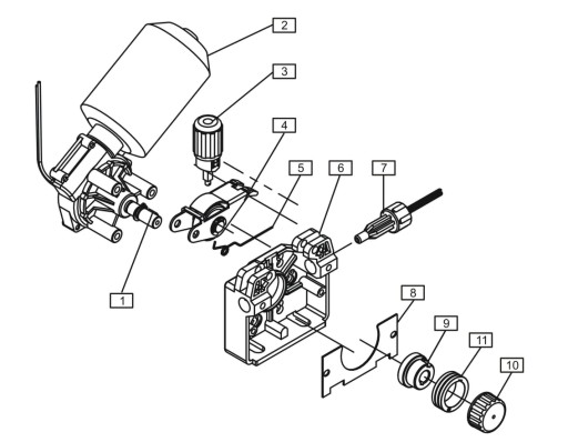 - możliwość mocowania w różnych pozycjach (mocowanie na 3 symetryczne rozmieszczone śruby M6, możliwość obracania silnika względem podajnika, co 120 stopni)