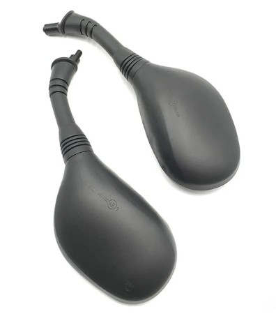 Uniwersalne lusterka motocyklowe w kolorze czarnym, kompatybilne z wieloma modelami motocykli ze względu na zastosowanie gwintu M8. Mają opływowy kształt, nie powodują niepotrzebnego oporu powietrza, a duża powierzchnia lustra zapewnia szerokie pole widzenia. Wykonane z solidnego tworzywa sztucznego. W zestawie komplet - 2 sztuki.