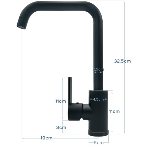 - Zasięg wylewki od środka otworu montażowego: 19 cm