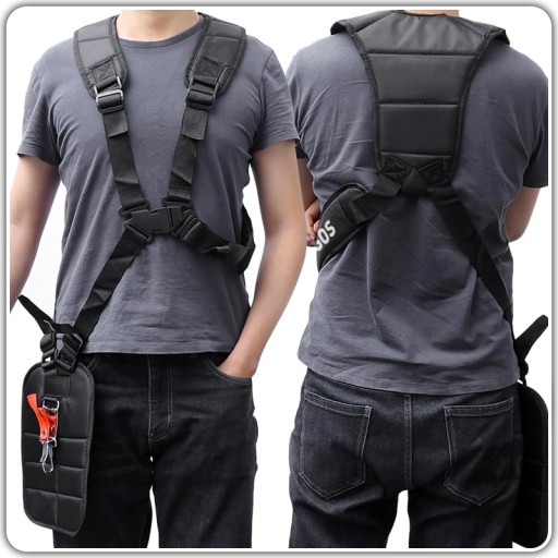 ⭐ Szelki do kosy to zestaw pasów zabezpieczających, których połączenie solidnymi klamrami tworzy wygodną uprząż-wieszak na elektronarzędzie.