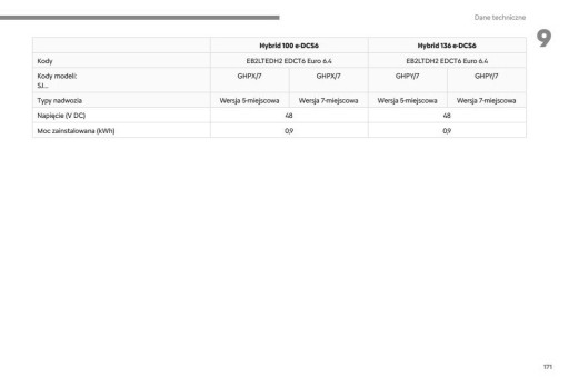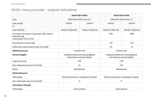 Pojazdy hybrydowe: Hybrid 100 e-DCS6, Hybrid 136 e-DCS6, Hybrid 100 e-DCS6, Hybrid 136 e-DCS6, PureTech 100, PureTech 136