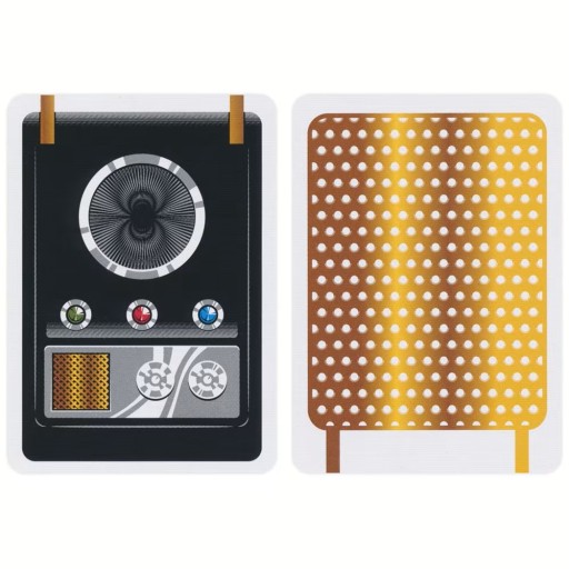 Karty "Star Trek" wydane przez Theory11 to kolekcjonerska talia inspirowana kultowym uniwersum Star Trek. Wyróżniają się wyjątkowym projektem graficznym, bogatymi zdobieniami i wysoką jakością wykonania. Każda karta nawiązuje do ikonografii i postaci znanych z serii, co czyni je prawdziwą gratką dla fanów. Każda karta w talii oddaje hołd legendarnym postaciom, które uczyniły Star Trek światowym fenomenem kulturowym – w tym Kapitanowi Kirkowi, Spockowi, Hikaru Sulu i wielu innym! Dzięki swojemu eleganckiemu wyglądowi, karty te sprawdzają się nie tylko podczas gry, ale również jako efektowny element kolekcji - idealne do eksponowania na półce czy w gablocie.