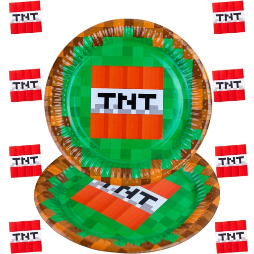 - Talerzyki papierowe Piksele TNT – 6 szt. (średnica 18 cm)