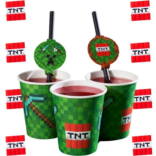 Zestaw PIXELE Kubeczki Talerzyki SERWETKI MINECRAFT zestaw 32 elementy