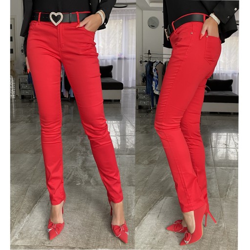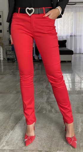 DŁUGIE SPODNIE CZERWONE RURKI MODNE + PASEK WYSOKI STAN DO BIURA FB222