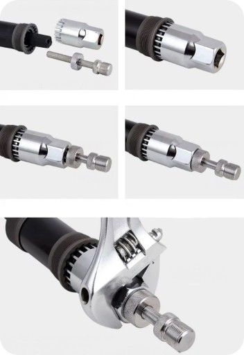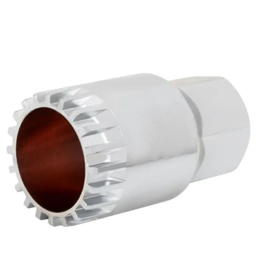 Dzięki precyzyjnemu dopasowaniu i systemowi blokującemu narzędzie pozostaje stabilne podczas pracy, co zapobiega jego zsuwaniu i chroni gwint. Wystarczy użyć go z klasycznym kluczem 24 mm, by bezpiecznie przeprowadzić serwis suportu bez potrzeby wizyty w warsztacie.