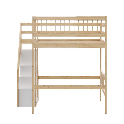 Wbudowana przestrzeń na przechowywanie maksymalizuje miejsce, czyniąc ją idealną dla małych sypialni lub pokoi wspólnych. Pod łóżkiem można umieścić sofa lub biurko, aby maksymalizować potrzeby dzieci, czy to jako miejsce do zabawy dla dzieci, czy jako stylowy schron dla młodzieży.