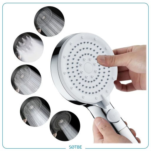 SOTBE LARK TIRSO wodooszczędna słuchawka prysznicowa 5 zakresowa z filtrem. Kolor chrom