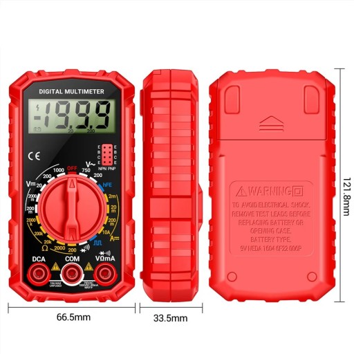 Napięcie prądu stałego: 200 mV-1000 V, rozdzielczość: 0,1 mV-1 V, dokładność: ± (1,0% odczytu )